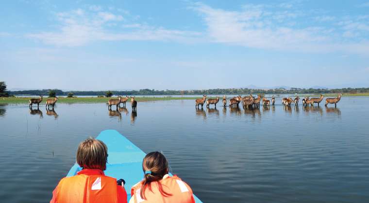 You will enjoy a peaceful and scenic canoeing safari following the shorelines of small Momella Lake. On this 2- 2.5 hours canoe safari you can view buffaloes, bushbuck, giraffes, hippos and many water birds living in and close to the water.